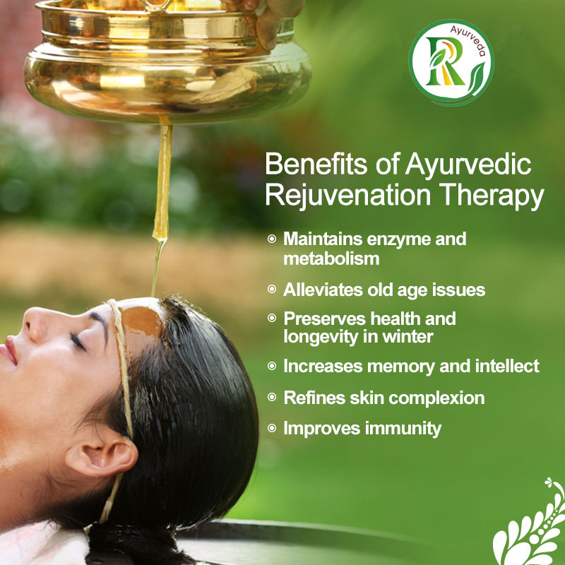 The benefits of rejuvenation therapy are manifold. Apart from promoting good health, it is beneficial to increase the healthy person’s mental and physical quality, the skin looks youthful and radiates its natural glow. It brings calmness and de-stresses the mind, relieving from anxiety.